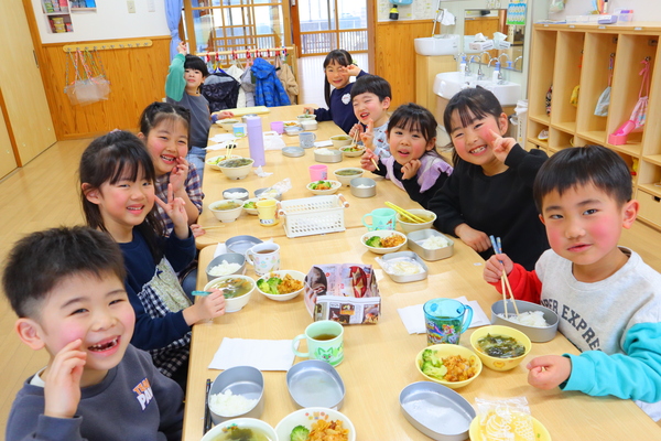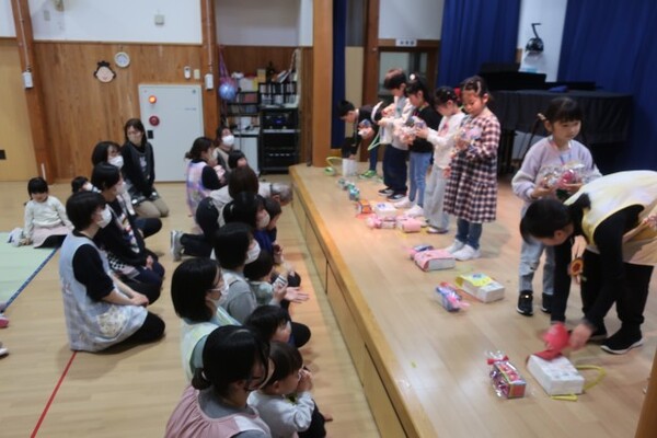 | みどりぐみさんのお別れ会がありました。 各クラスで出し物を準備し、みどりさんに感謝を伝えました。 一緒に給食を食べることもできて良かったです。 もうすぐ卒園するみどりさん、残りの園生活も楽しんでね✨ |
